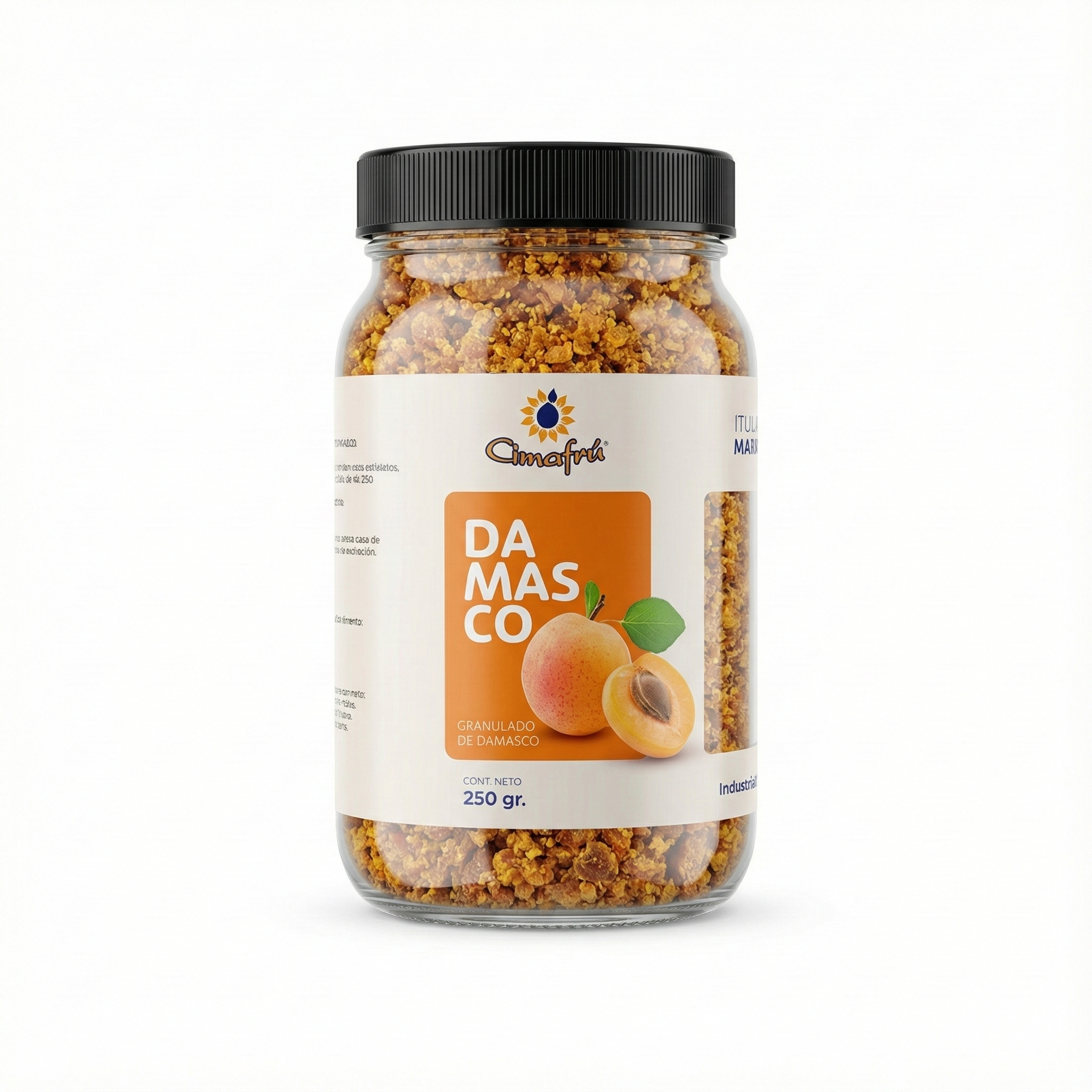El damasco tiene carácter propio y acá se nota. Fruta deshidratada y granulada que concentra su sabor entre dulce y ácido, con un perfil más profundo y adulto que otras frutas.