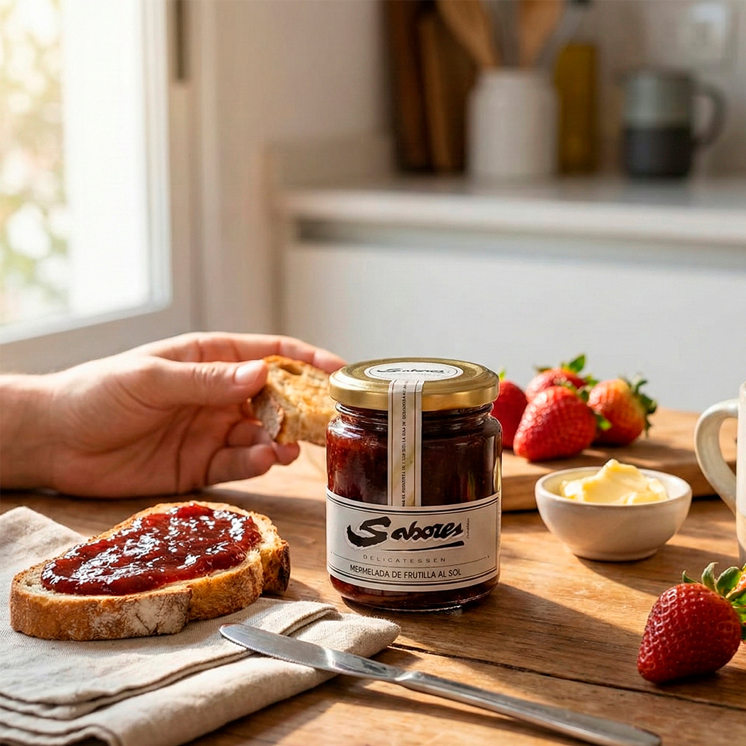 UNA VEZ SELECCIONADAS LAS FRUTILLAS ROJAS MADURAS EN SU PUNTO JUSTO, SE PROCESAN, SE LES AGREGA AZÚCAR Y LA PULPA SE COLOCA BAJO EL SOL. ESTA ES NUESTRA COCCIÓN “SIN FUEGO”, EL SOL EVAPORA HUMEDAD Y CONCENTRA EL AZÚCAR, LUEGO DE 5 DÍAS LA MERMELADA ESTÁ LISTA PARA SER ENVASADA. DE ESTA FORMA CONSERVAMOS TODO EL SABOR, COLOR Y AROMA ORIGINAL.
